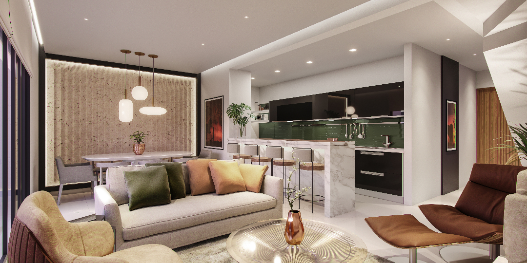 A disposição inteligente dos ambientes favorece tanto a convivência familiar quanto a privacidade individual. Os espaços generosos permitem múltiplas configurações de mobiliário, adaptando-se perfeitamente ao estilo de vida contemporâneo.