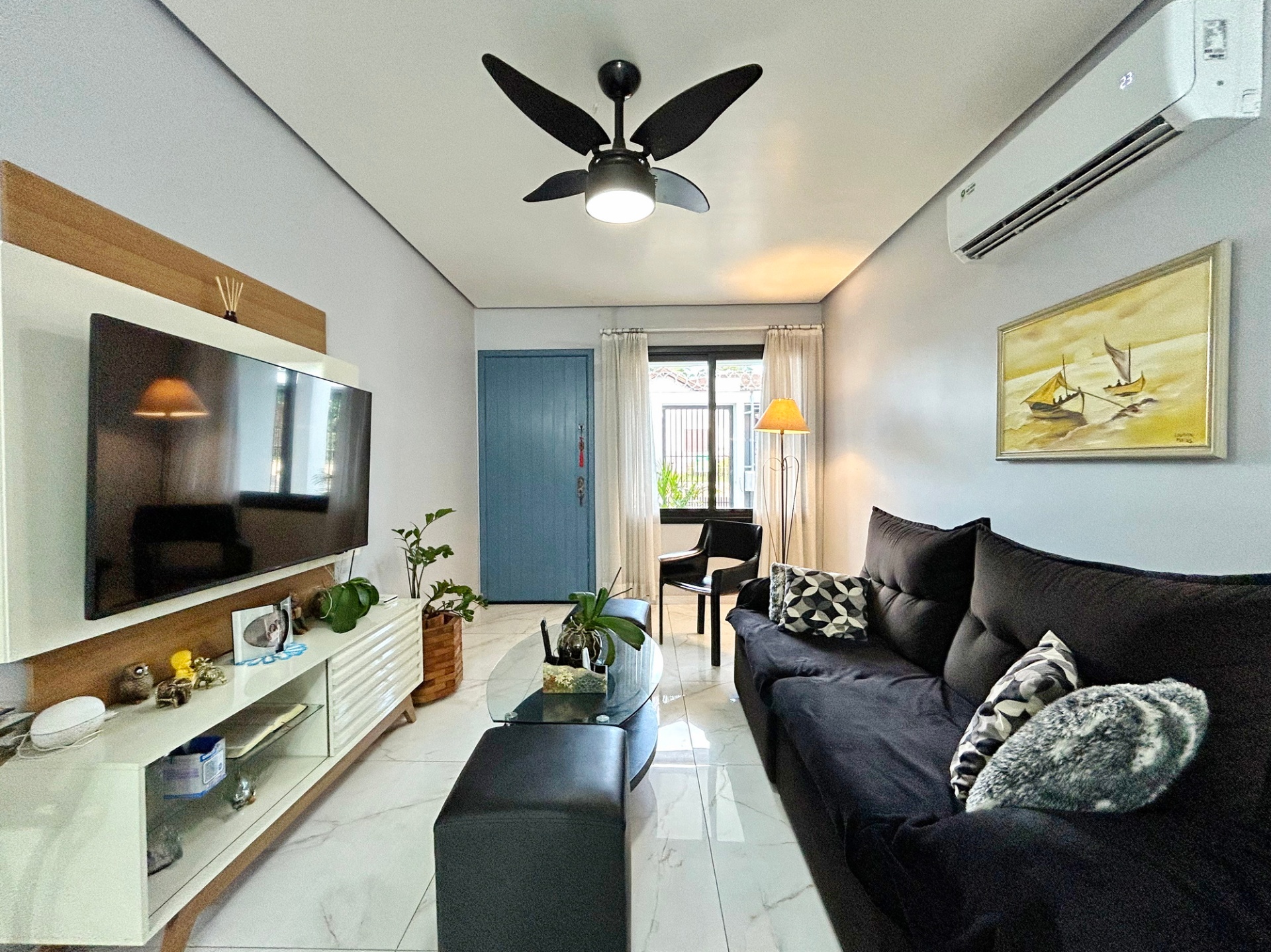 Casa plana, totalmente reformada e com amplo pátio.